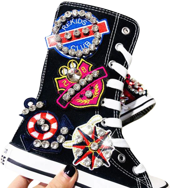 MOF Kids autumn hi-top shoes rhinestone canvas hi-top sneakers for girls