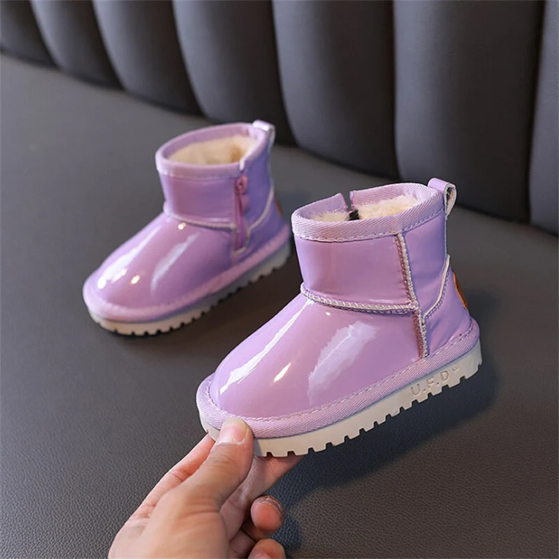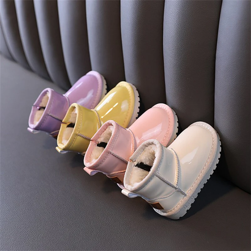 MOF Kids new winter boots silicon candy colors waterproof non-slip warm plush girls snow boots