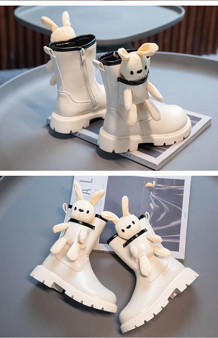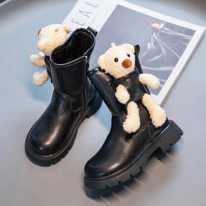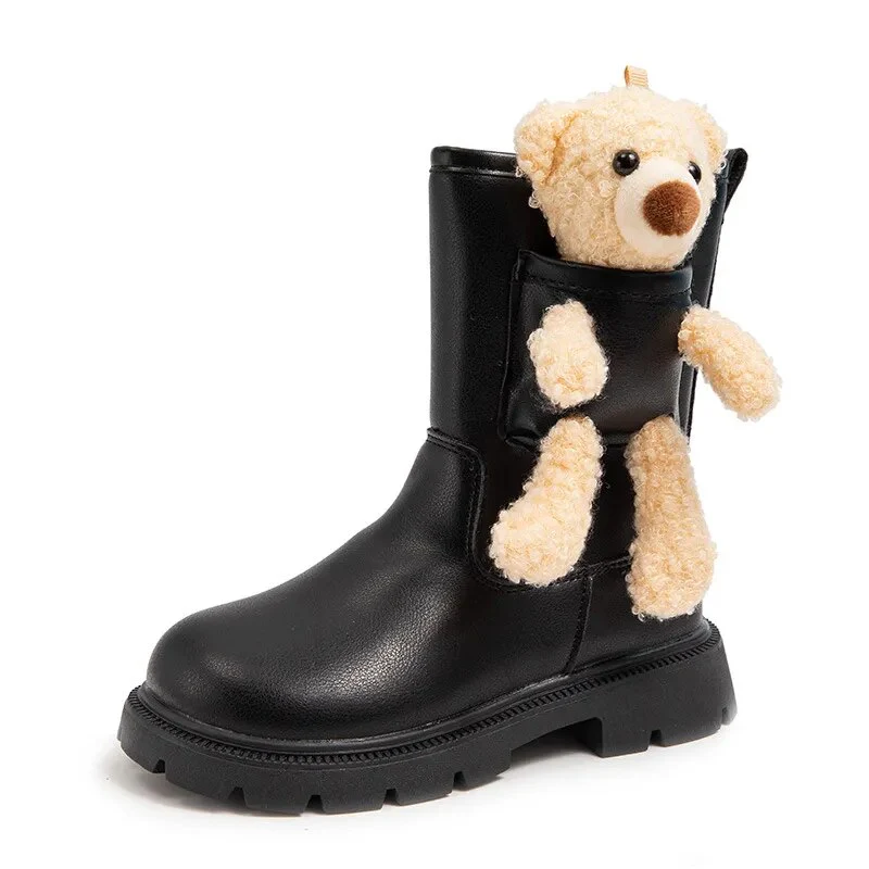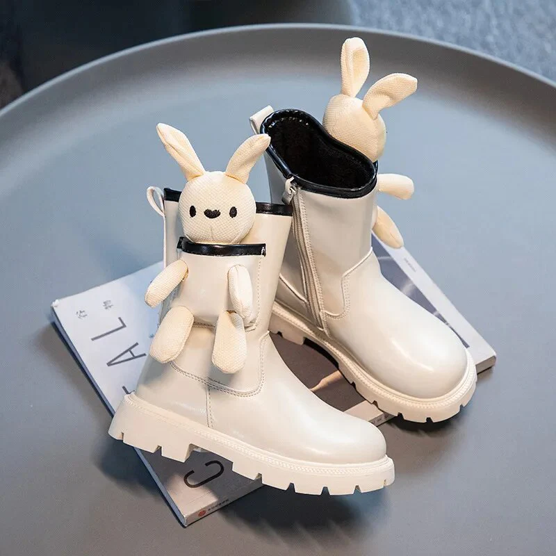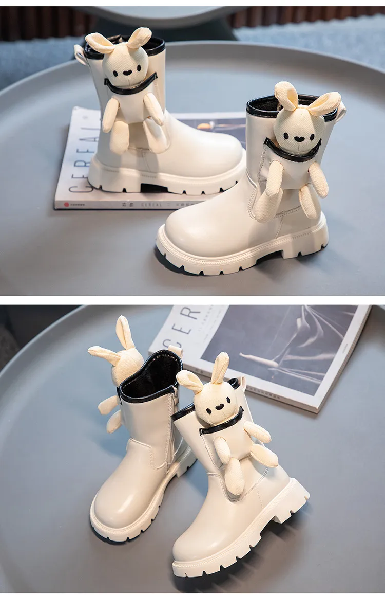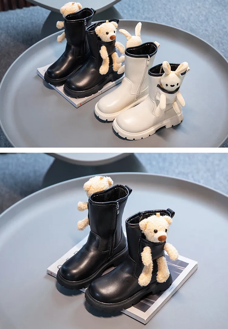 MOF Kids Cartoon Leather Boots for Autumn Soft Slip-Resistant and Cute Animal Design