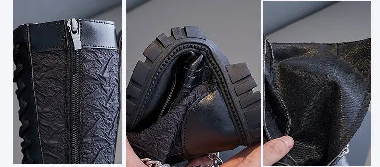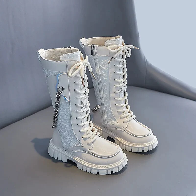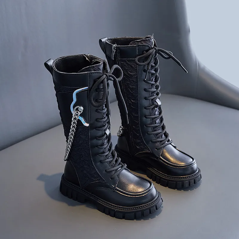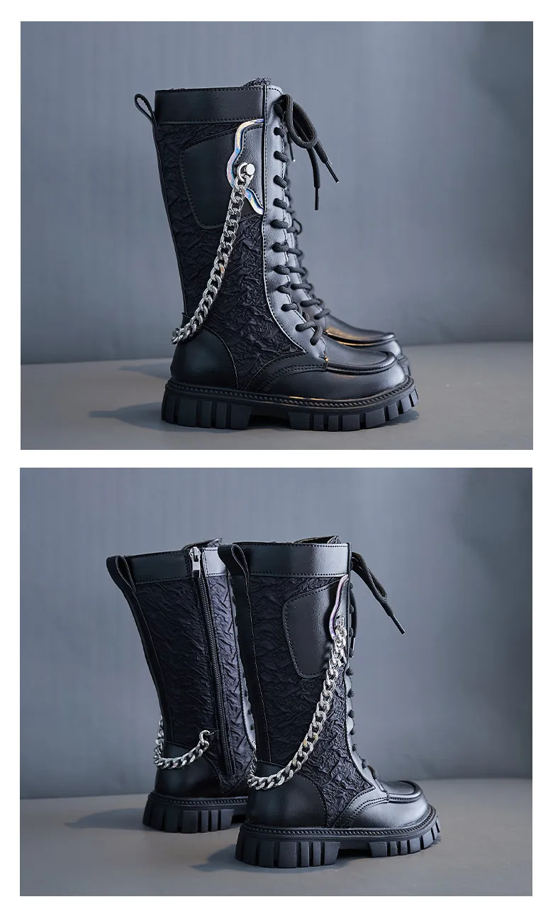 MOF Kids Fashion Knight Boots for Spring and Autumn Breathable Stylish and Chain-Decorated
